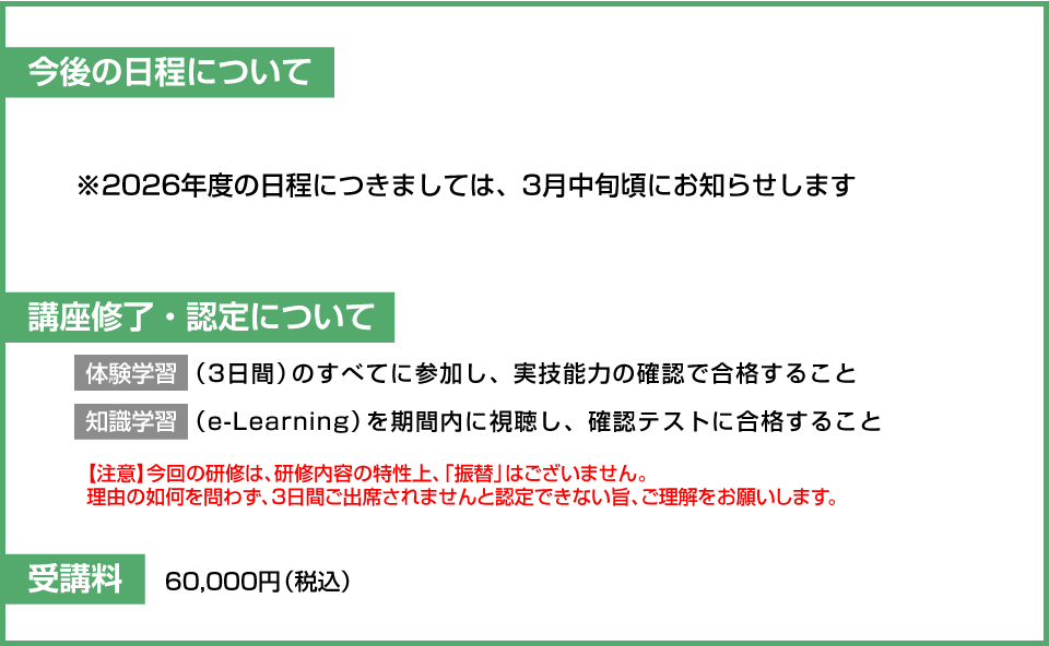 2026年度の日程につきましては3月中旬頃にお知らせいたします